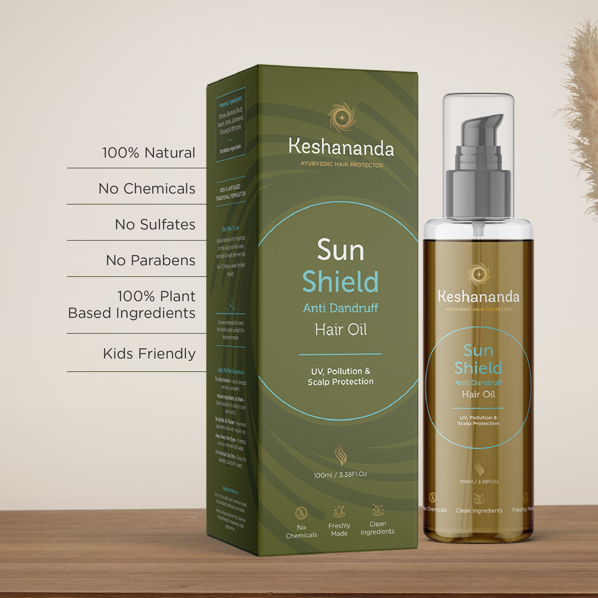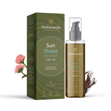 Keshananda Solarized Herbal Blend – Anti Dandruff is a powerful Ayurvedic oil that tackles dandruff at the root. Enriched with Yarrow, Neem, Burdock Root, and Amla, it cleanses the scalp, reduces flakes, and soothes irritation. Infused using Solar Shield Science™, this herbal oil enhances absorption and provides lasting protection against UV and pollution. 100% plant-based, chemical-free, and deeply nourishing—this is your holistic solution for a flake-free, healthy scalp and naturally beautiful hair.